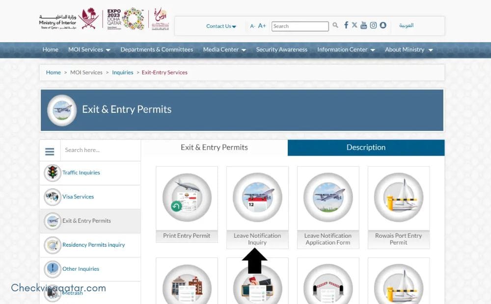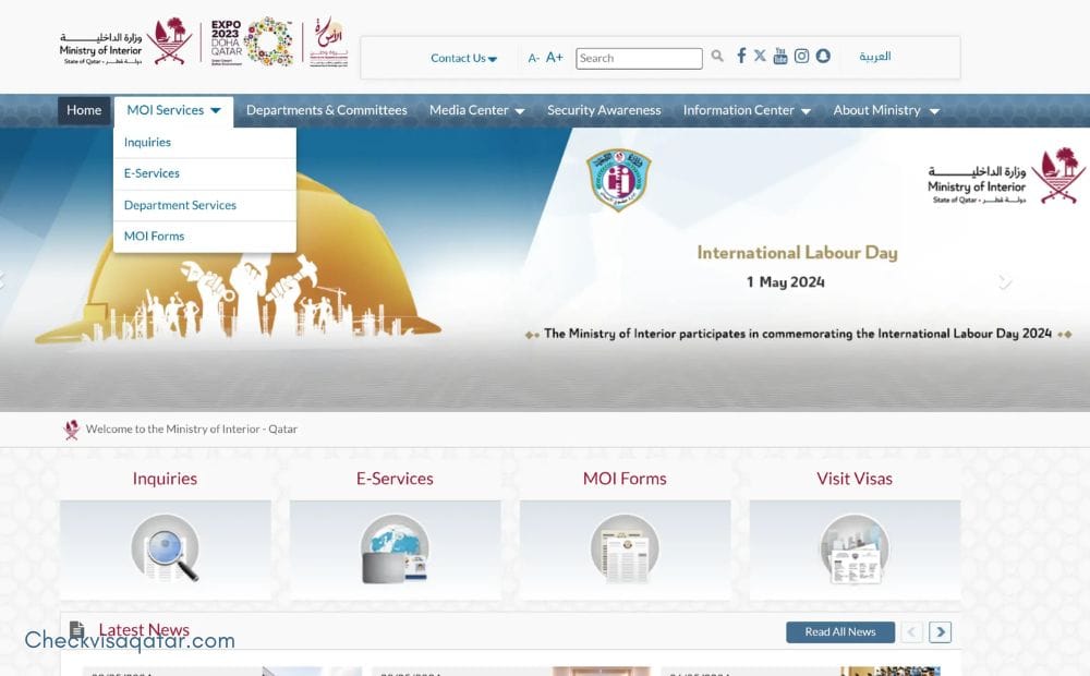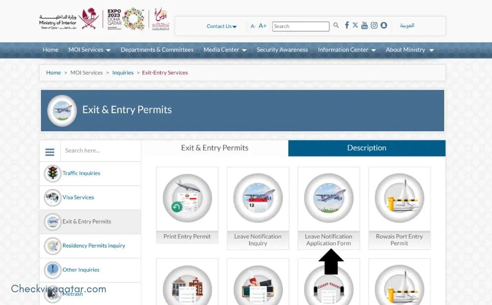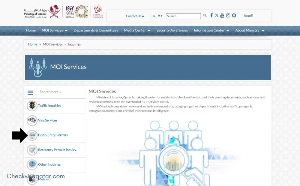 To check your exit permit status, start by visiting the official MOI Qatar website: https://portal.moi.gov.qa.